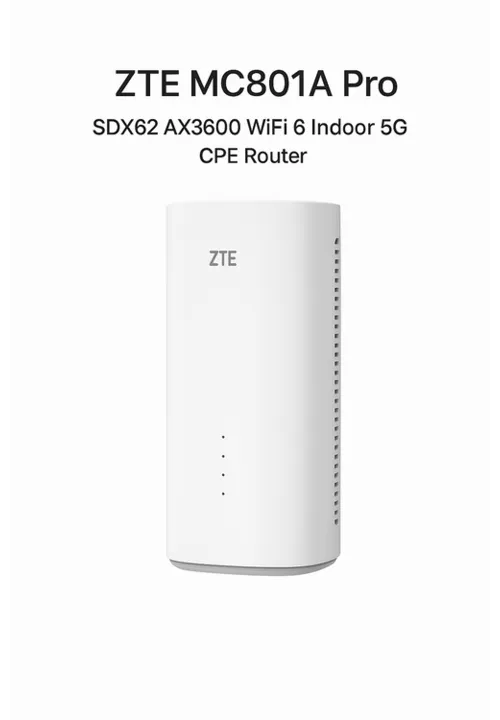 The ZTE MC801A Pro SDX62 AX3600 WiFi 6 Indoor 5G CPE Router is a high-performance 5G wireless router designed for home and small business use. It features a newer Snapdragon X62 chipset compared to the base model, high-speed Wi-Fi 6 technology, and powerful internal antennas for better indoor coverage.